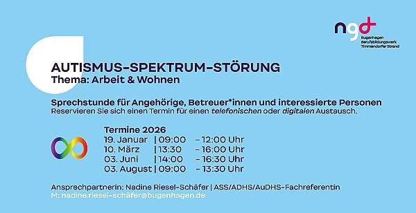 - Allgemeine und individuelle Beratungsangebote für Unternehmen und Praktikumsbetriebe zum Thema Autismus und Arbeit
